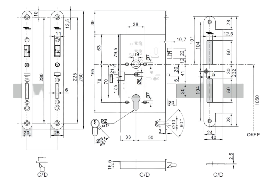 | Тип запирания | Двухточечное, прямым ригелем и ригелем двойного действия |