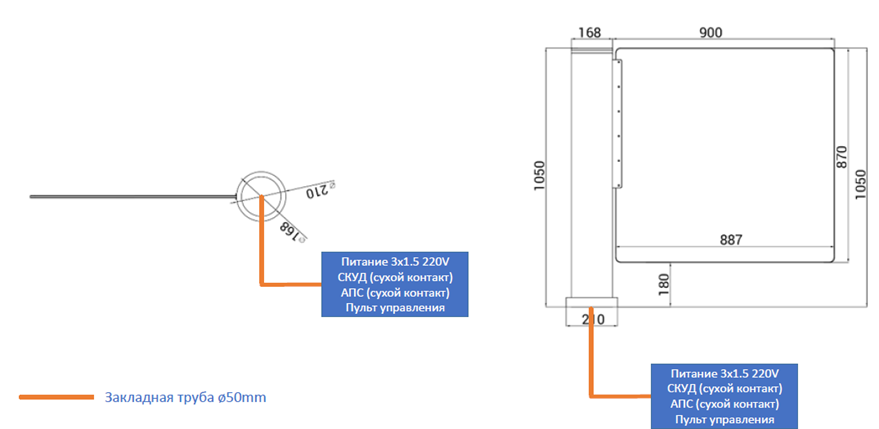 1. Для прокладки проводок используется ПВХ труба диаметром 50 мм